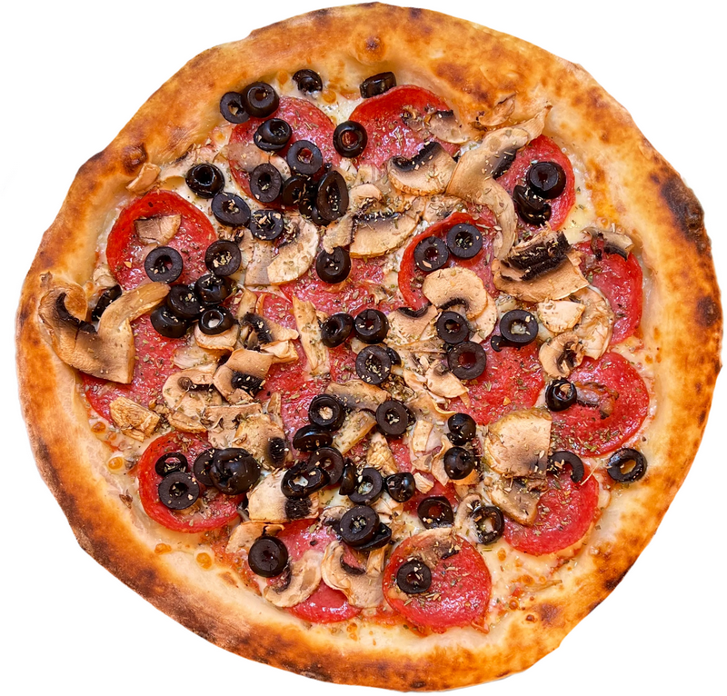 моцарелла, салями, шампиньоны, маслины, итальянские травы, томатная основа